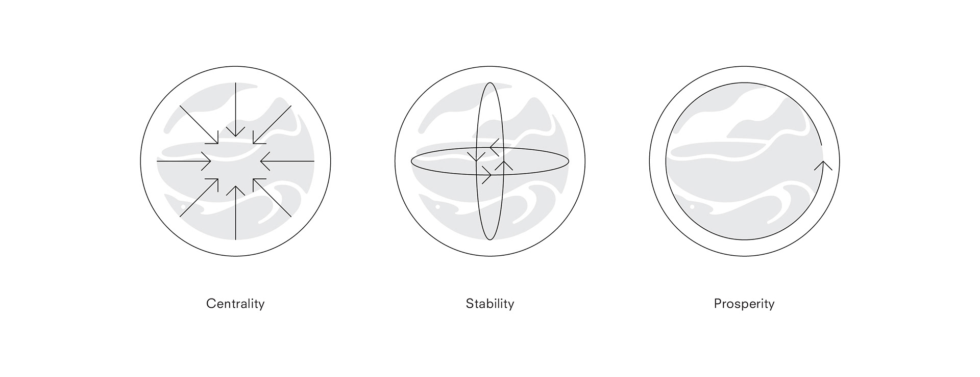 A visualization of the sky as a symbol that embraces and protects the globe (countries in the region in particular). Symbolically, the sky acts as an umbrella for the globe.