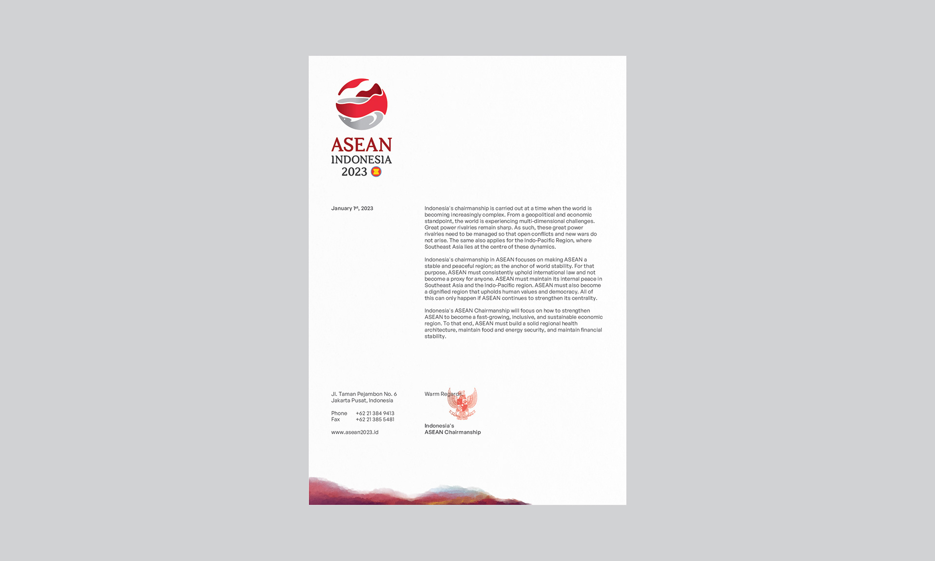 Visual Identity design for Indonesia's Chairmanship of ASEAN in 2023. This project is under Ministry of Foreign Affairs of the Republic of Indonesia, in partnership with ADGI (Indonesian Graphic Design Association).