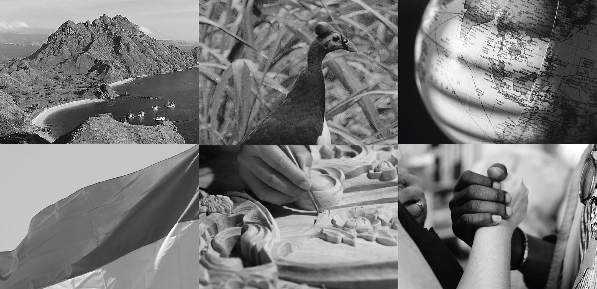As a country with strong character, the image of Indonesia is displayed through a custom-tweaked logotype, using Lora font as the base, which visualizes detailed minimalist craftsmanship in the style of "Nusantara" carved art.