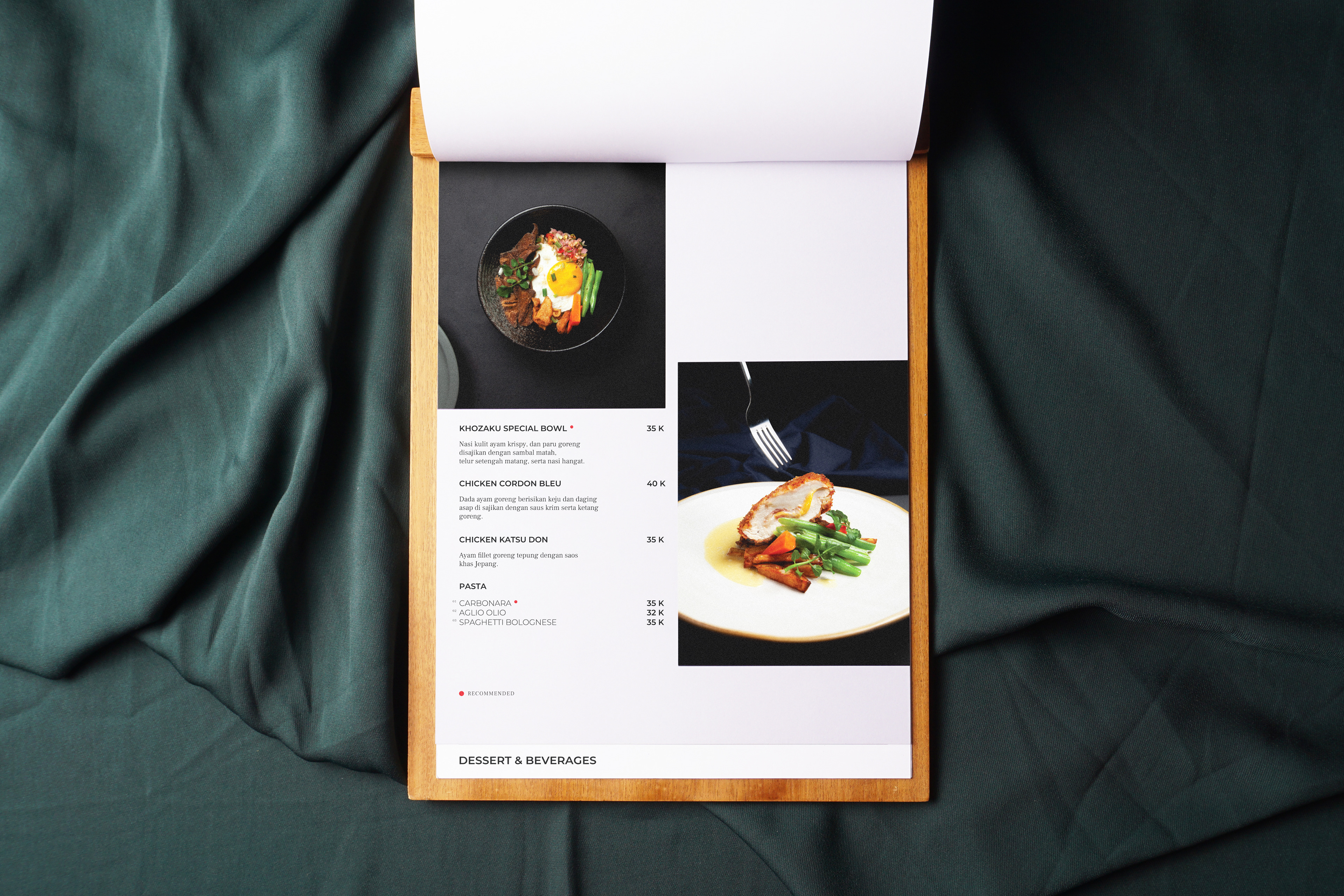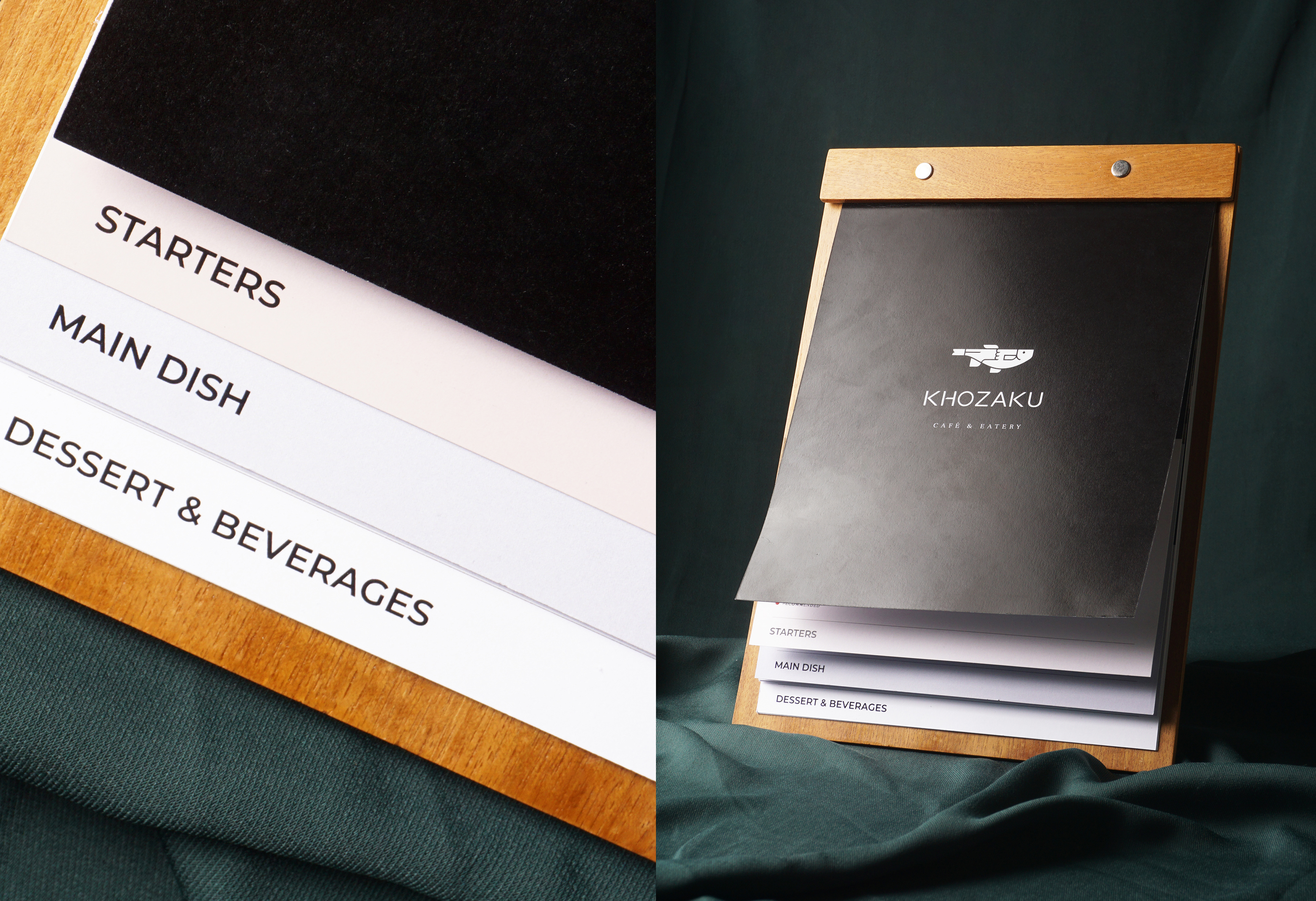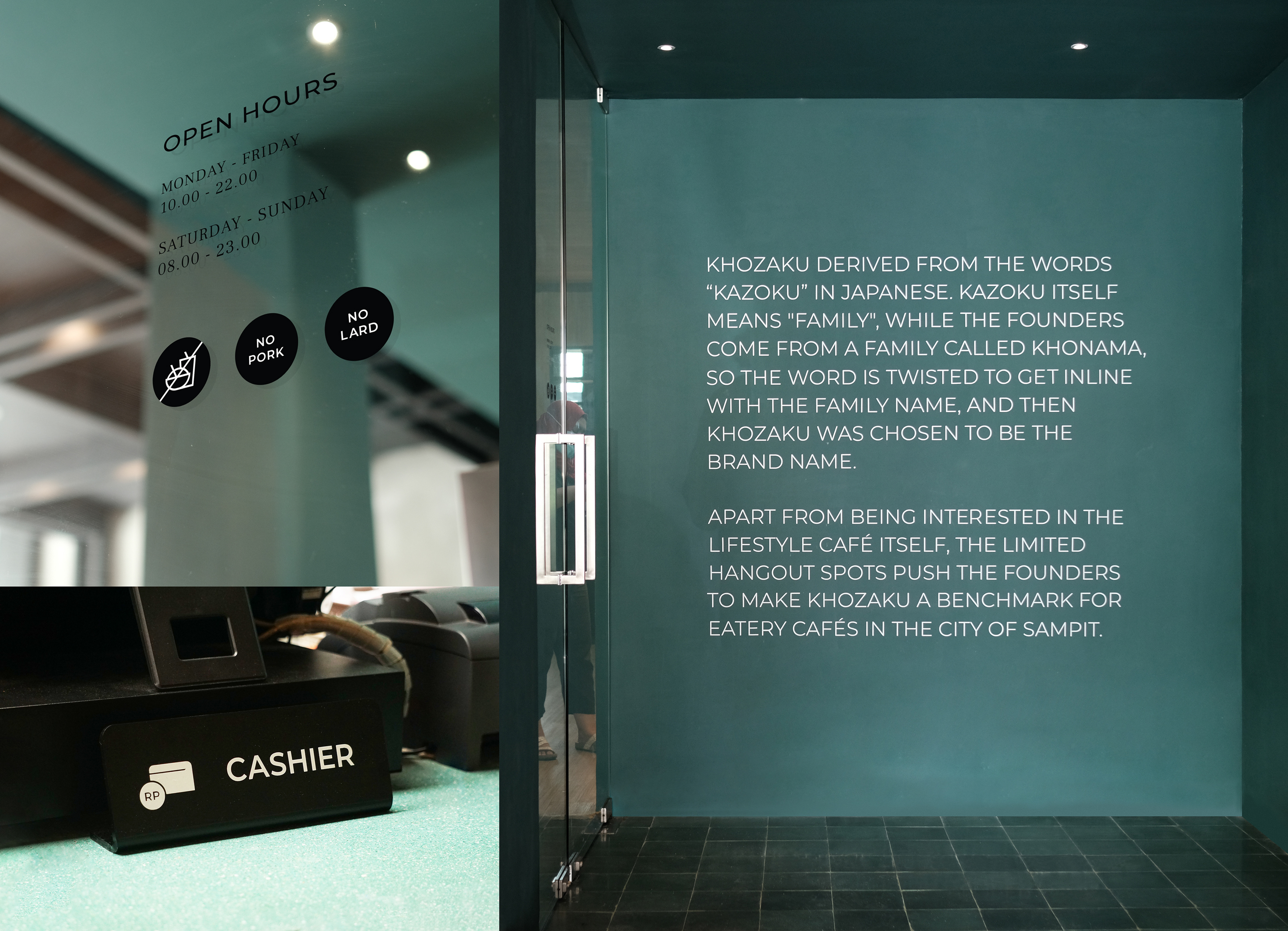 Visual Identity for a dining place in Sampit, Khozaku - Cafe and Eatery. Khozaku derived from the words “Kazoku” in Japanese. Kazoku itself means "family", while the founders come from a family called Khonama, so the word are twisted to get inline with the family name, and then Khozaku was chosen to be the brand name.