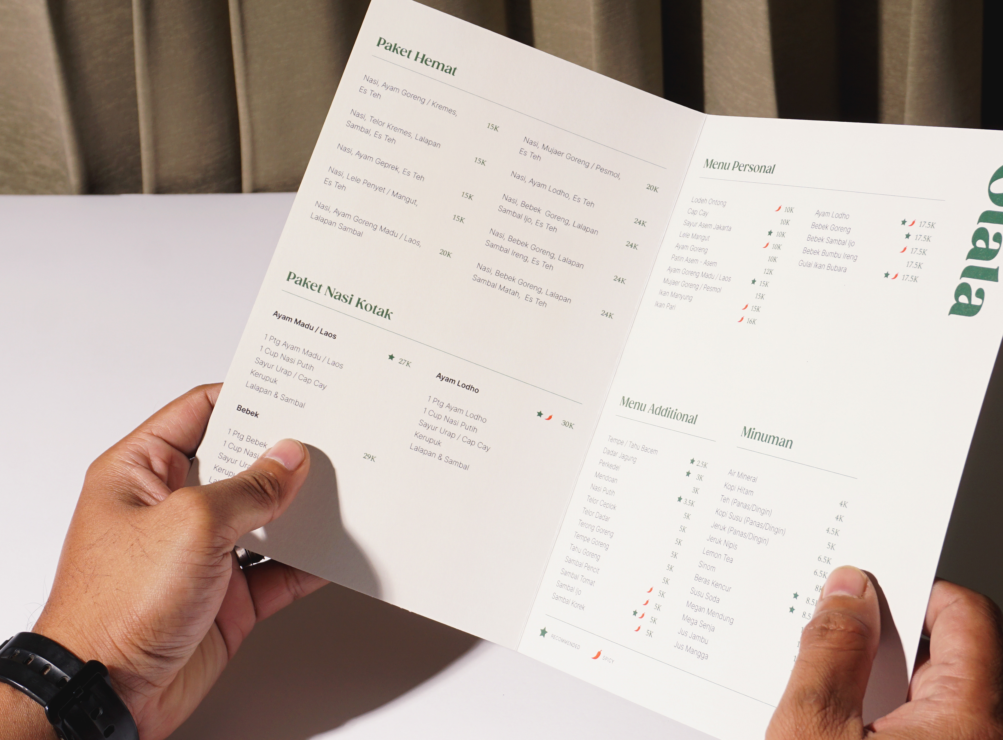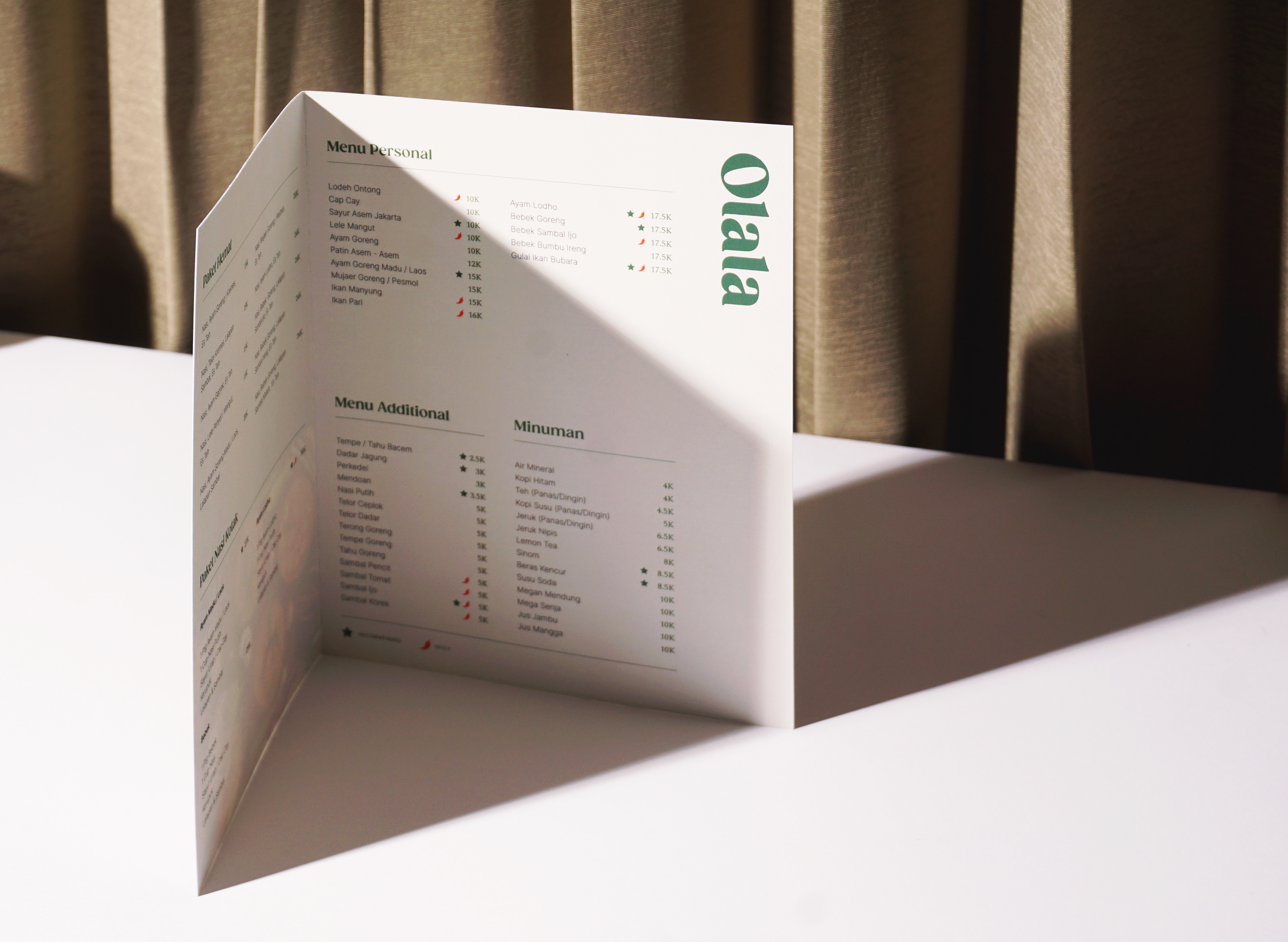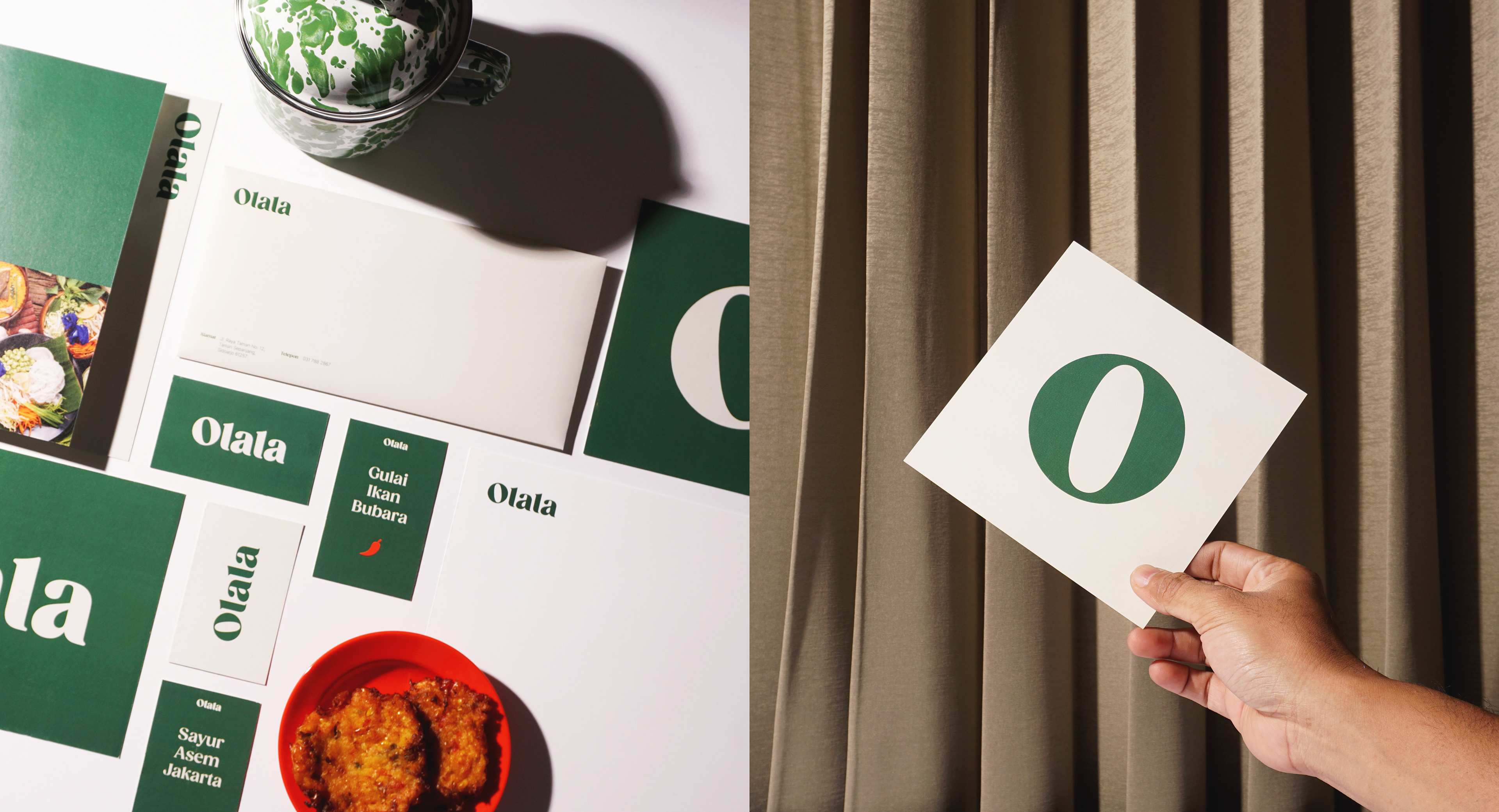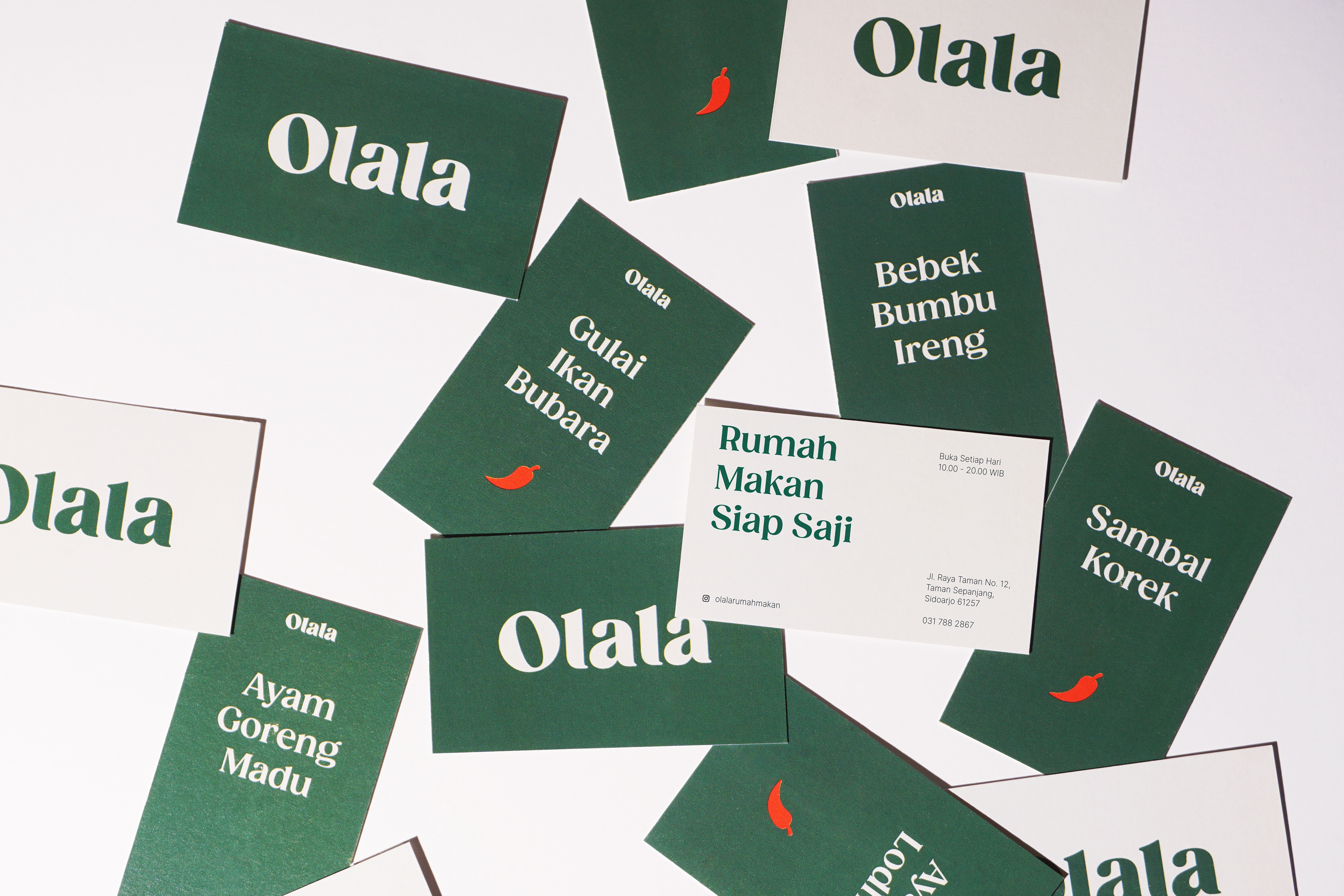 Visual identity design for Rumah Makan Olala, a family-owned buffet restaurant located in Jalan Raya Taman, Sidoarjo. Serving a variety home-style cooking food with a comfy atmosphere makes Olala one of the mainstay restaurants for visitors who are traveling out of town, office and factories workers around. A new identity developed and designed for Olala to support the rejuvenation of the whole new brand image.