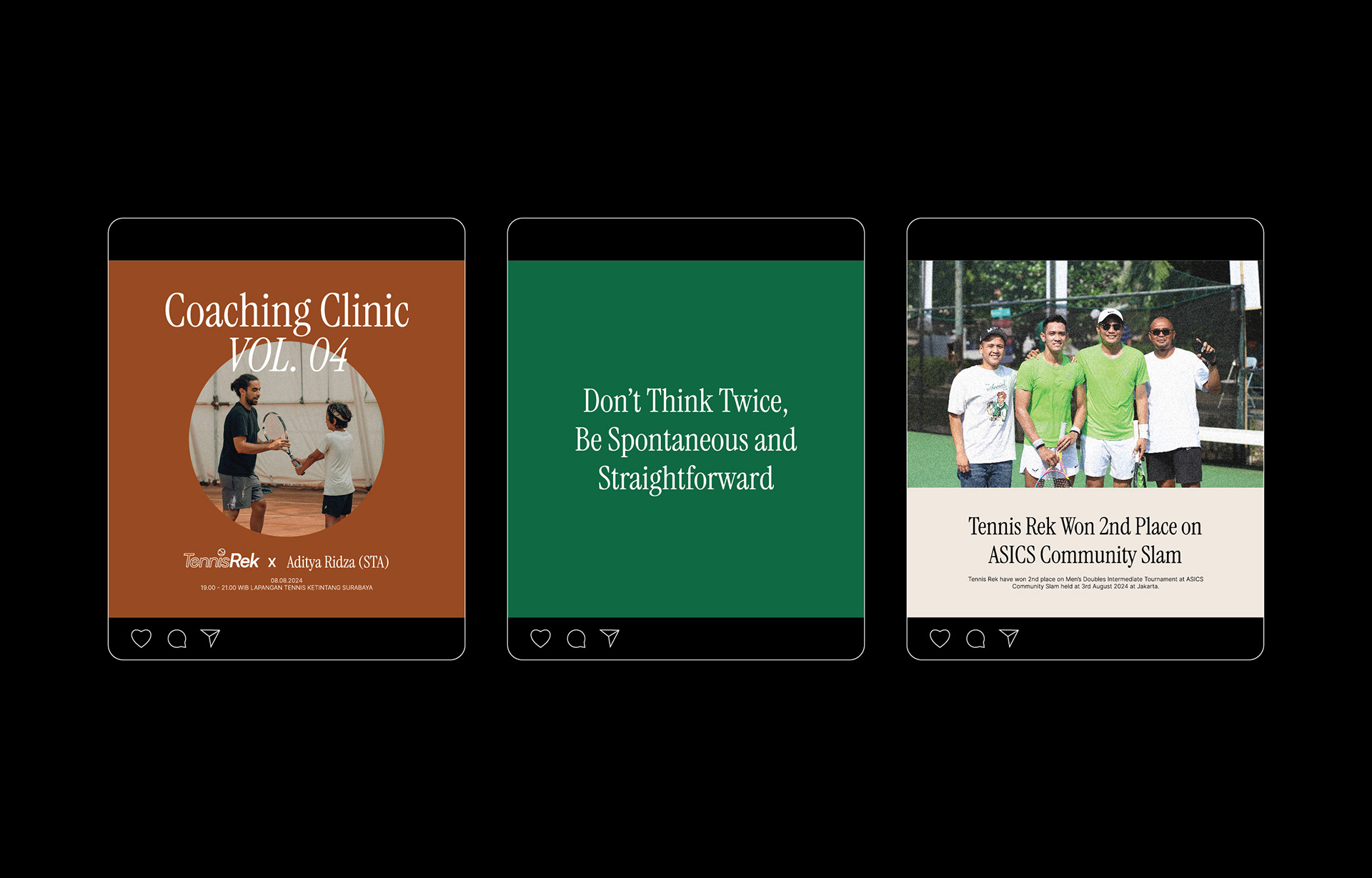 Managing over 1000 participants in a community, Akronim re-creating a visual that feels more representative for Tennis Rek, which is a remarkable visual identity that is more modern, professional, and also have a dynamic look that inline with Tennis sport.